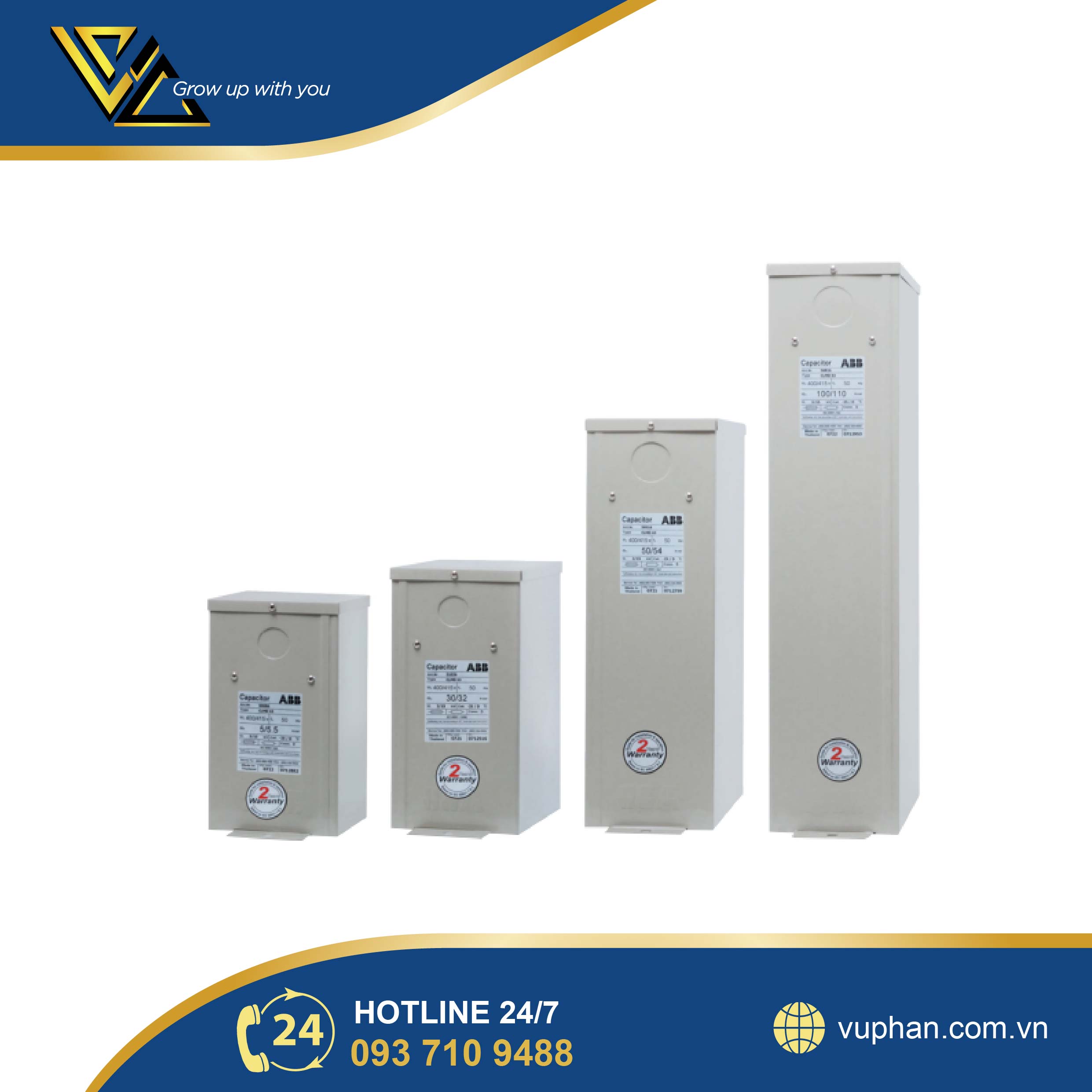 Tụ bù ABB (Thụy Sĩ / Thụy Điển) – thương hiệu hàng đầu thế giới trong lĩnh vực thiết bị điện và tự động hóa công nghiệp, nổi bật với dòng tụ bù CLMD có độ ổn định cao và công nghệ tự phục hồi.