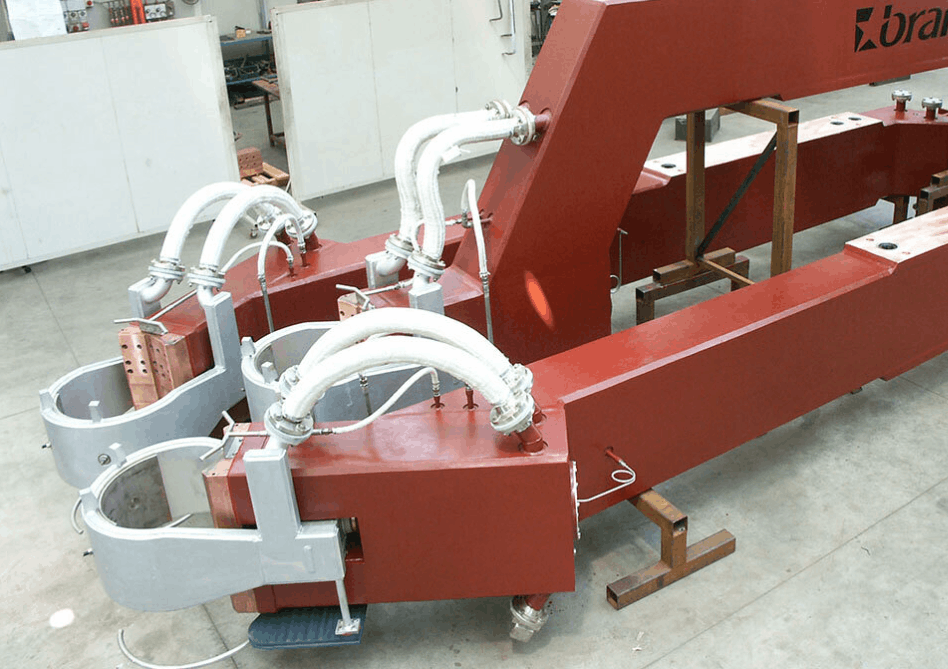 Các tay kẹp than điện cực lò EAF/LF của Brar được thiết kế với phần thân trung tâm sử dụng kết cấu lưỡng kim (bimetallic), kết hợp giữa thép P275NH và đồng Cu-HCP. Hai vật liệu này được liên kết bằng công nghệ hàn nổ (explosion welding), đảm bảo độ dẫn điện cao đồng thời duy trì độ bền cơ học vượt trội. Thiết kế này cho phép tối ưu khả năng tản nhiệt và nâng cao độ bền vận hành trong điều kiện làm việc khắc nghiệt.